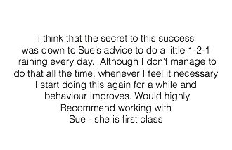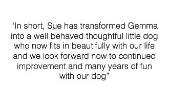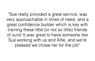 Dogs In Line is a 1-2-1 home dog training service based in Hurstpierpoint. Covering surrounding areas in East and West Sussex such as, Brighton, Hayward's Heath, Worthing and Gatwick and further if required. Initially your dog will need an assessment. The Behaviour Assessment will be in your home for introductions and an opportunity to discuss any issues minor or major you are having with you dog or dogs in a relaxed familiar environment. Sue will recommend a quick walk, so she can get an over all picture of the problems you are experiencing. At the end of the assessment Sue will discuss with you three of the following options and what would be the right course or plan for you and your dog. The cost of the assessment is £45 this normally takes an 1 hour 1-2-1 Training options Pay as you go £60-£70 If your dogs’ behaviour is only slight, Sue may feel that you only need a few lessons or even just the one. This will all be discussed on the assessment. A customised course/package £210-£260 This is the most popular option. If you dog is displaying a number of issues such as aggression, chasing behaviours, anxiety a customised course will be more suited. This course is flexible, generally consisting 3 to 4 lessons which normally spread over a period of weeks. This gives you time to implement and practise the techniques in-between lessons. Take a peak at Sue's outstanding testimonials